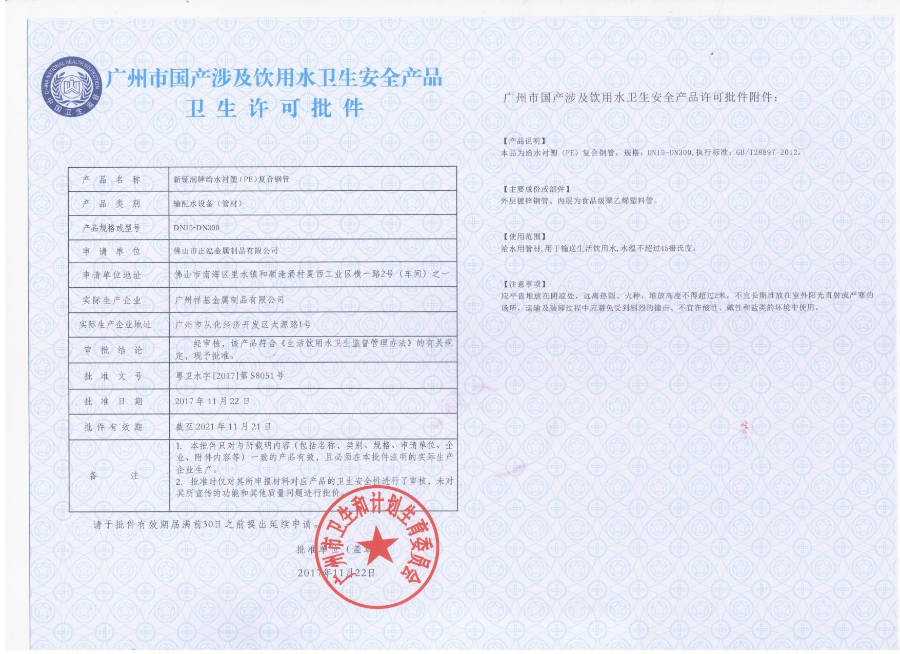 佛山市正泓金屬制品有限公司座落于佛山市南海區里水鎮和順逢涌村夏?工業區一路168號,毗鄰佛山一環,處于和桂工業區A區,交通方便,提貨便捷。本公司生產銷售集鋼鐵 、塑料優點于一體的新鉦潤牌襯塑鋼管、涂塑鍍鋅鋼管 (又稱鋼塑復合管)及管件,本產品保存原來的鋼鐵強度,提高了管內的防銹腐蝕能力,有利于供水水質,新鉦潤牌襯塑管內壁平滑,減少對水的流動阻力,不積垢,增加了管道的壽命,減少維修費用。 正泓公司在拓展到實現跨越式發展的過程中,率先通過了ISO9001: 2015質量管理體系認證;公司榮獲“中國質量信用AAA級企業” 、“ 中國質量信用企業” 、“ 職業健康安全管理體系認證” 、“環境管理體系認證” 、“飲用水衛生許可證” 、“守合同重信用企業” 、“污染物排 放許可證〞 等榮譽,產品經省市有關部?檢驗合格,產品 廣泛用于供水、消防、電信等工程。